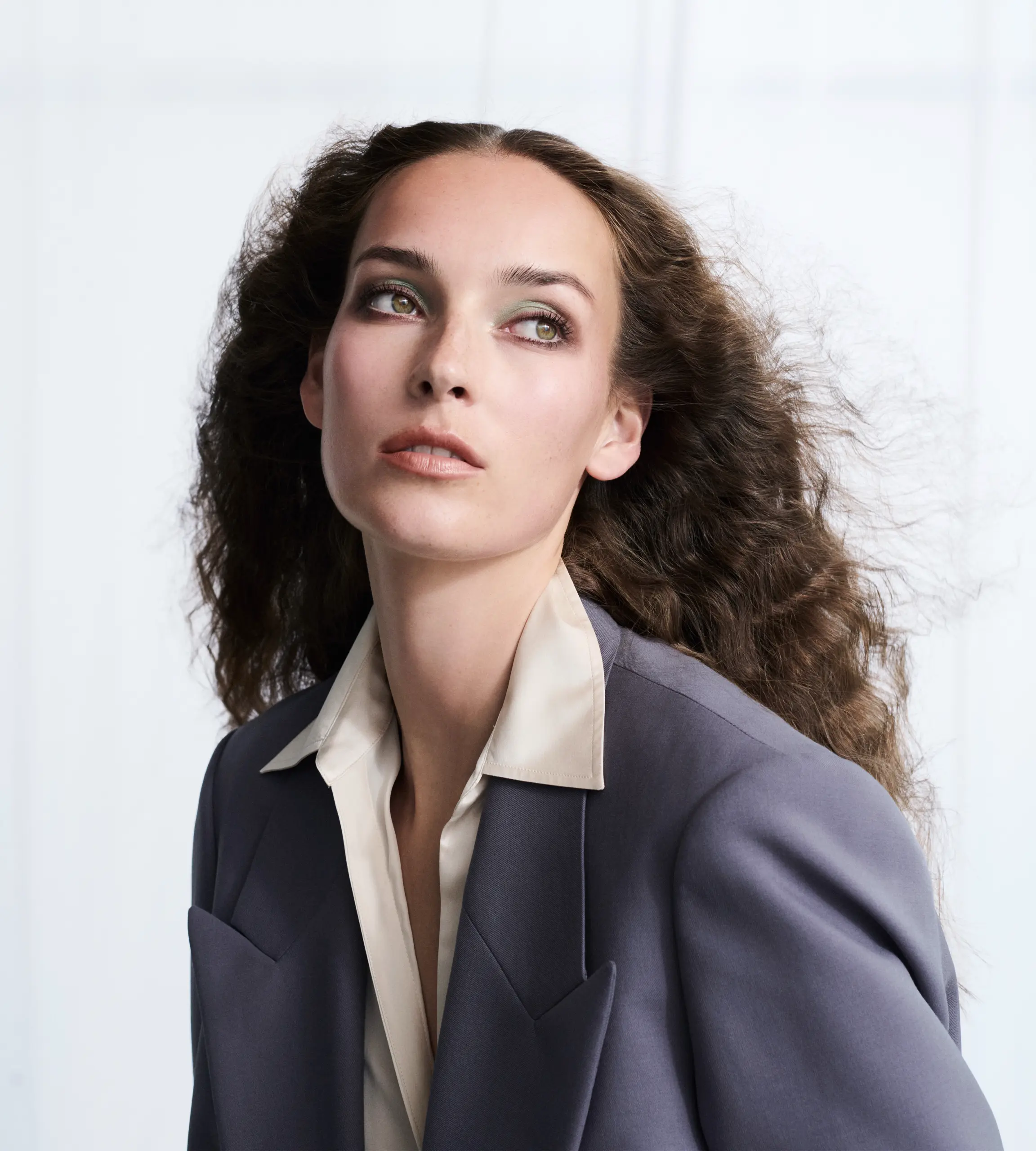 Ein fesselnder Look mit subtiler Exotik. Dem schimmernden Mintgrün des Eyeshadow Pen Tropical Breeze steht die kühle Präzision gegenüber, mit der der Pencil for Eyes Walnut Silk die äußeren Augenwinkel akzentuiert. Selbstbewusst und eigenwillig, wie die mit dem Pencil for Lips Dune leicht überzeichnete Lippenkontur, die nahtlos in den warmen Nude-Ton von Sensual Lipstick Savannah übergeht.